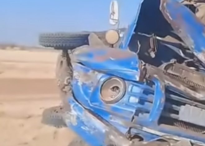 أدى وقوع حادث سير مؤسف الي تلف سيارتين من نوع ( أوستن) لوري إثر تصادم عنيف بينهما على الطريق البري الترابي الرابط بين مدينتي حلفا الجديدة وشندي  .