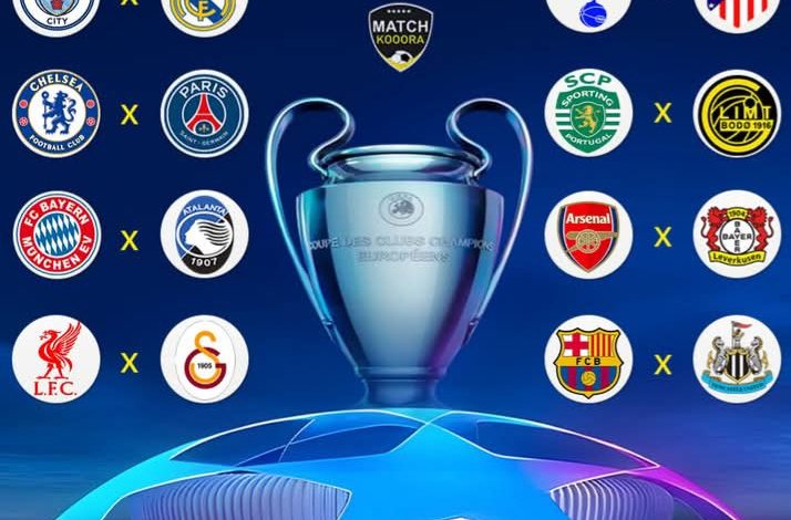 أتلتيكو مدريد X توتنهام،،،، بودو غليمت X لشبونة ،،،، ليفركوزن X آرسنال،،،،،،نيوكاسل X برشلونة،،،،ريال مدريد X مان سيتي،،،، سان جيرمان X تشيلسي،،،، أتالانتا X بايرن ميونيخ،،،،جالطة سراي X ليفربول …