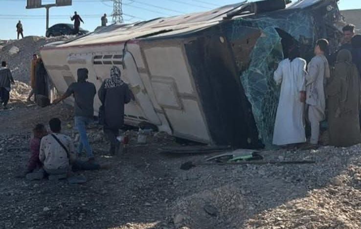 تعرض بص سياحي قادم من جمهورية مصر العربية الي السودان الي حادث سير مؤسف أدى لانقلابه في مدينة قنا .