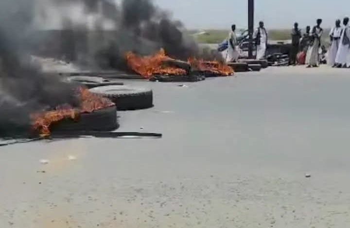 أغلق محتجون الإثنين الطريق القومي الرابط بين مدينتي سواكن وبورتسودان بولاية البحر الأحمر مما تسبب في تعطيل حركة المرور .