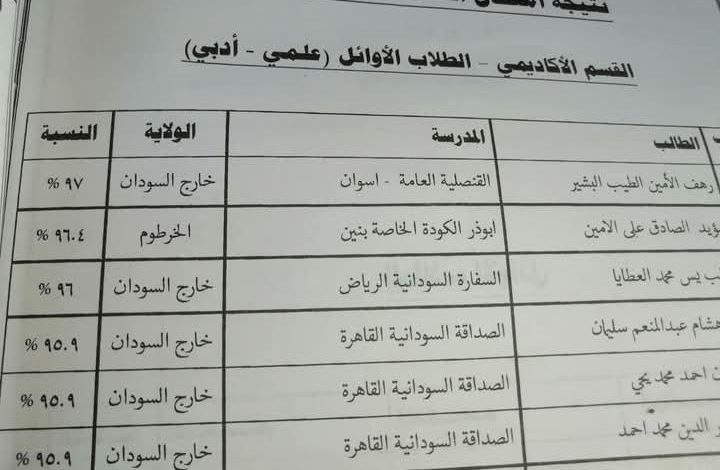 أحرزت الطالبة رهف الأمين الطيب البشير المركز الأول في امتحانات الشهادة السودانية المؤجلة للعام 2024م، بنسبة (97%) من القنصلية العامة أسوان – مصر.