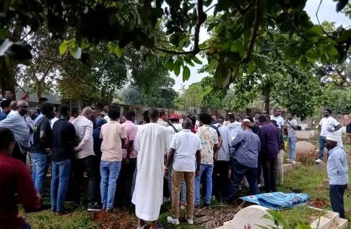 شيع عشرات السودانيين المطرب علي كايرو حيث ووري جثمانه الثرى في مقابر كلولو في العاصمة الأوغندية كمبالا .