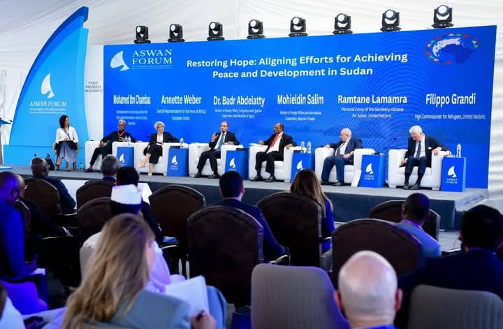 بحضور المبعوث الشخصي للأمين العام للأمم المتحدة متحدة للسودان رمطان لعمامرة والممثل الأعلى لمبادرة “إسكات البنادق” ورئيس اللجنة رفيعة المستوى لتسوية النزاع في السودان بالاتحاد الإفريقي محمد ابن شمباس شارك وزير الخارجية محي الدين سالم في جلسة حول جهود تحقيق السلام والتنمية في السودان خلال منتدى أسوان للسلام والتنمية المستدامة حيث شارك في المنتدي وزير الخارجية المصري بدر عبد العاطي ومبعوثة الاتحاد الأوروبي للقرن الأفريقي آنيت فيبر ومفوض الأمم المتحدة السامي لشئون اللاجئين فيليبو جراندي وتناولت الجلسة سبل حل النزاع في السودان بصورة شاملة ومستدامة، وفرص التوصل لاتفاق لوقف إطلاق النار والمرحلة التي تليها، بالإضافة إلى أولويات عملية ما بعد النزاع، وما يمكن للمجتمع الدولي تقديمه من اسهامات في هذا الشأن، وبما يعزز الملكية الوطنية السودانية لتلك الجهود ويضمن الأمن والاستقرار في السودان.