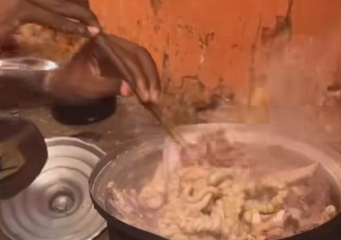 نشر أحد الجنود المرابطين في مدينة الفاشر مقطعا مصورا وهو يعد ( وجبة مدنكلة) لأبطال الفاشر أطلق عليها كرامة الإسقاط  ..