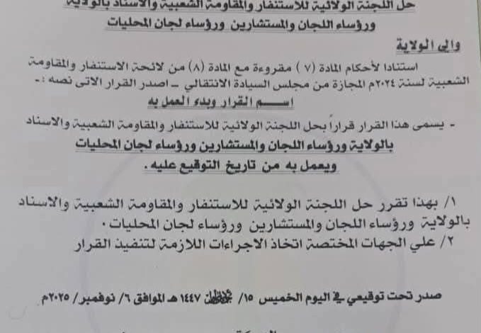 حل جميع لجان الاستنفار والمقاومة بنهر النيل