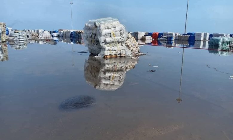 أدت الأمطار التي شهدتها أنحاء متفرقة من ولاية البحر الأحمر الي غمر البضائع وعفش المسافرين المكدس في فناء ميناء سواكن .