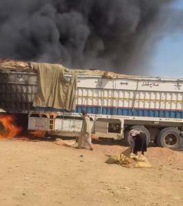 وشوهدت ألسنة النيران تتصاعد بكثافة من شاحنات في وسط المدينة يرجح أنها تحمل عتادا عسكريا لكن لم تصدر حتى الآن تقارير موثوقة عن حجم الخسائر جراء القصف الجوي على زالنجي .
