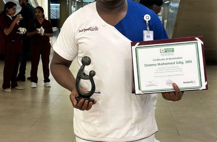 حصد السوداني أسامة أحمد تجاني جائزة ديزي العالمية ( Daisy Award ) للعمل الانساني المميز في مجال الرعاية الصحية والتمريض في العالم بعد اختياره من بين اكثر من 800 مرشح ممرض وممرضة في الرعاية الصحية .