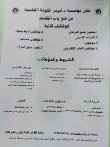 الإعلان عن وظائف متنوعة بمدارس الكودة