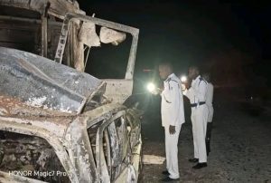 ‏قتل ثلاثة أشخاص بعد احتراقهم  جراء حادث سير مروع بين سيارة بوكس وإحدى الشاحنات بمنطقة عروس بولاية البحر الأحمر  . وتفقد مدير إدارة المرور السريع في ولاية البحر الأحمر  موقع الحادث المروري الذي وقع بطريق بورتسودان أوسيف منطقة عروس .