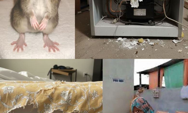 ​ياخ ده فات الدعامة فى المضرة بتاعتهم، قرم لينا هدومنا الفى الدولاب كلها، الفلاين بتاعتى جراها وحشرها جوه الجحر بتاعه، ليفة الحمام دخله الجحر بتاعه، اسلاك الكهرباء بتاعت التلاجة قرمضه لينا بأسنانه وبوظه لينا.