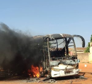 إندلع حريق مفاجئ في بص سياحي متوقف يتبع لسفريات أبوالسارة بخط (أم روابة–بورتسودان) بأحد أحياء مدينة أم روابة بولاية شمال كردفان الخميس .