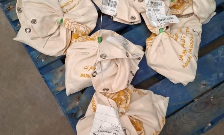 وصلت إلي مطار القاهرة الجمعة شحنة ذهب علي متن طيران تاركو من بورتسودان وتتوزع الشحنة علي تسعة طرود بوزن 225 كيلو ذهب ..
