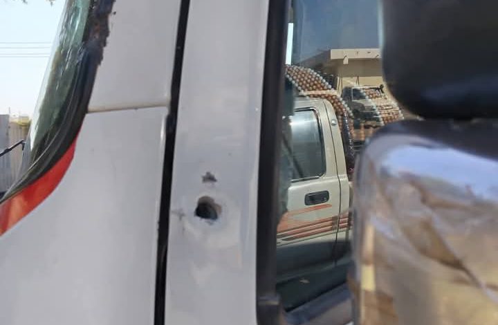 نفذ قطاع طرق عملية إعتداء على سيارة  نقل ( دفار ) مما أدى إلى تعرض سائق السيارة الي كسور وجروح حيث قامت العصابة  بإطلاق النار مباشرة على سيارته بغرض النهب .
